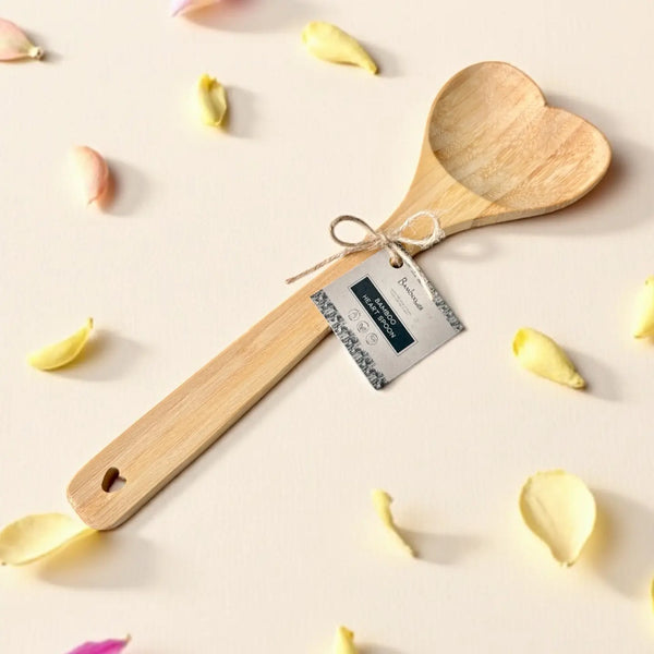 Bamboo kitchen and serving utensils. Designed for comfort and functionality, their sleek, ergonomic shape makes mixing and serving stylish and sustainable.