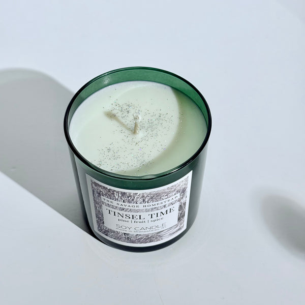 Step back to the golden glow of the holidays when silver tinsel shimmered under warm bulbs and the scent of fresh pine filled the house with TINSEL TIME. Sparkling notes of orange and winter spice mingle with evergreen, balsam, and spruce - while hints of berries add a cheerful touch of nostalgia. It’s a cozy Christmas Eve in the 1970s around the tree, the twinkle of tinsel catching the light.